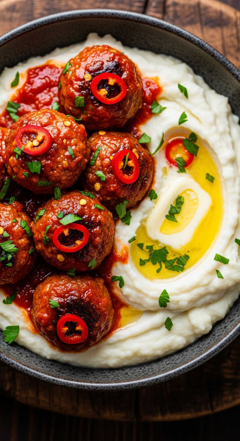 A: This pairing strikes a perfect balance between bold and gentle flavors. The turkey meatballs bring a spicy, vibrant kick that excites the palate, while the cauliflower mash cools and soothes with its silky texture and subtle earthiness. it’s a dance of heat and creaminess that transforms a simple meal into an adventurous experience.
