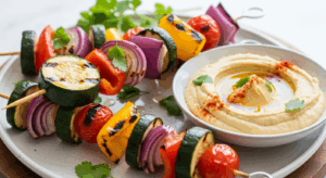 - plate and Garnish: Serve grilled veggie skewers warm alongside a generous bowl of hummus. Drizzle olive oil over the hummus and sprinkle smoked paprika or chopped parsley for a final vibrant touch.
