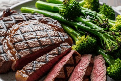 Sizzling Grilled Steak Paired Perfectly with Steamed Broccoli